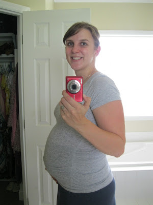 I guess the tiring part of this week is just getting bigger. I'm beginning to get really tired at the end of the day. Thankfully the house is almost done and I can slow down a bit more. Baby girl is still moving around in there plenty and has started pushing on certain parts of my body. I can't really figure out what's pushing but I do get certain pressure points during the day.