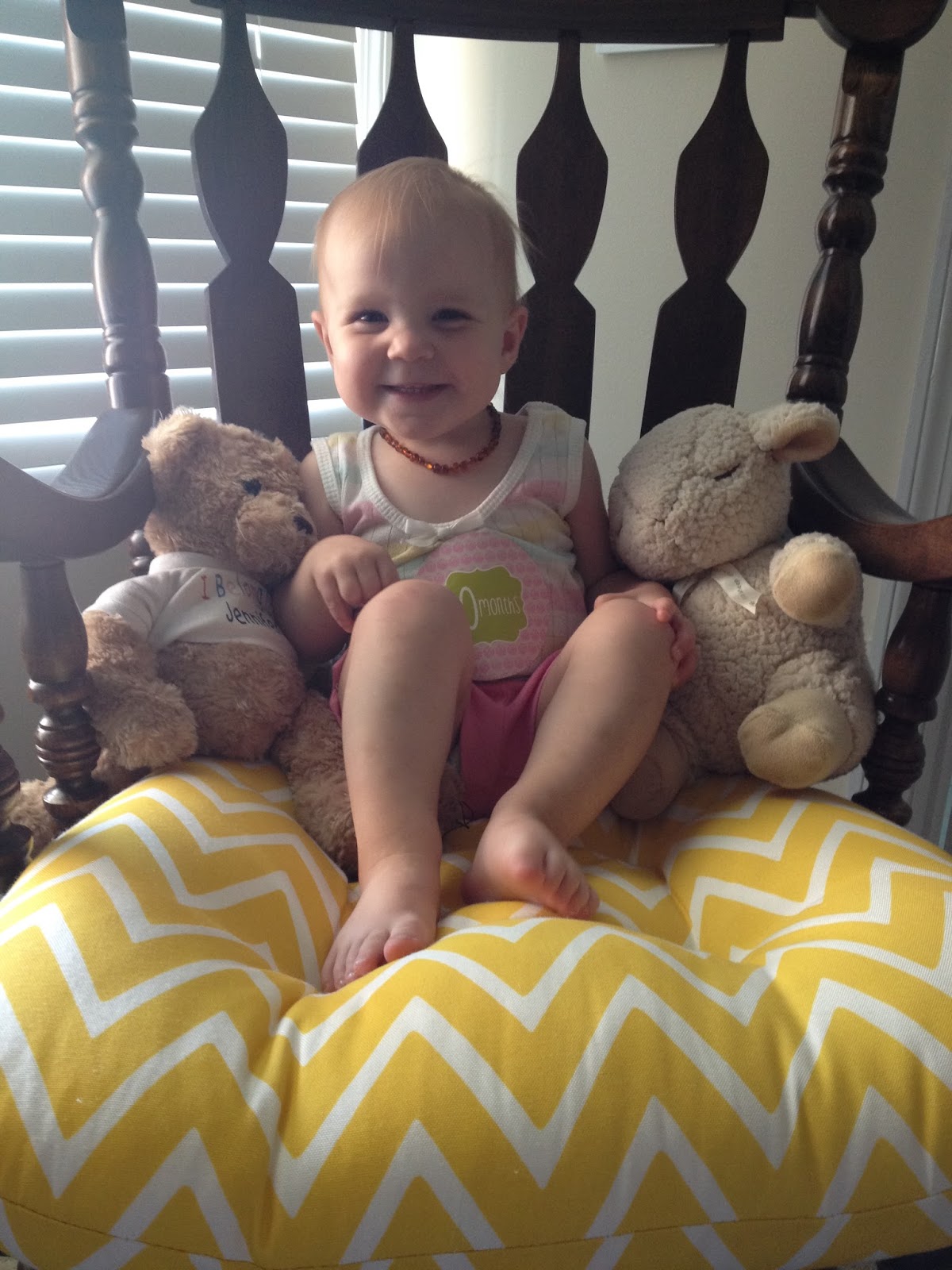 Sleep: You have slept through the night a few more times this month although it's not exactly a habit by any means. You usually go to bed around 9 and get up sometime around 5. You will still nurse a bit and then go right back to bed. We are still doing our bedtime routine and you seem to have really caught on.